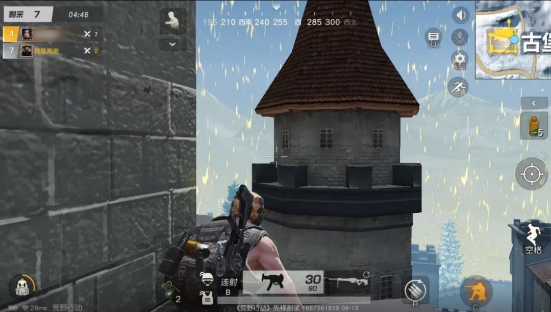 当我们在古堡楼下低处时,千万不要忘记抬头看看,说不定就能发现几个空中靶子。当他们处于失重状态时,是无暇顾及下面的人的。这时,便可以在楼下找好时机,选好角度,趁其不备,将其愉快收盒啦!