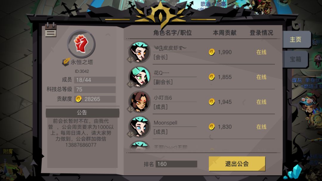 养老工会,不强制钻石贡献,每天任务 boss 金币许愿 完成就OK,贡献看得过去就行