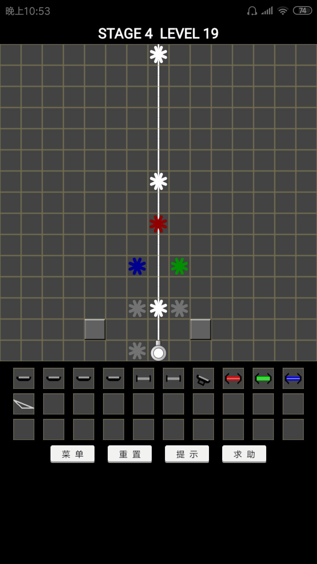 从给的镜子和关卡分析,本关是通过分光镜分出3条白光分别通过红绿蓝三花