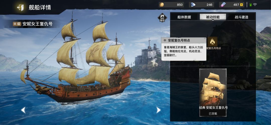 首先女王号的属性很平均是个平衡船,侧炮和前炮火力也不错当然要打出高伤害比较简单的只要能准确打到对面船室,点火加漏水就是对敌人成吨伤害。