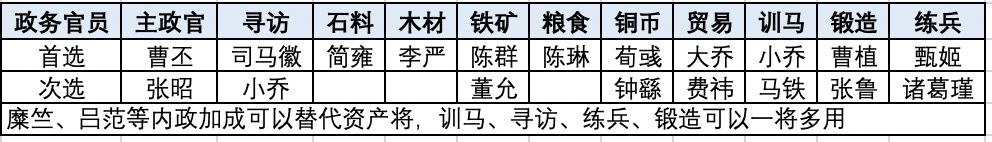 1.内政将:有资源才有科技、才有兵,以下内政将S1能收抓紧收,带到S2发展迅速;魅力将一将多用。