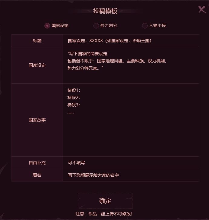 (本次活动暂时只针对世界观征集哦~)