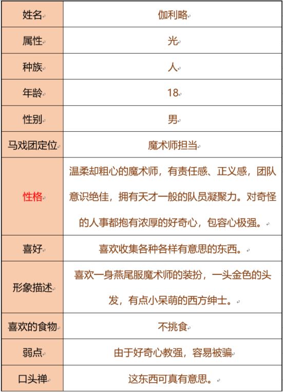 伽利略自小就生活在一个驯兽马戏师的世家。从小耳目熏染的教导使他从小便是优秀的驯兽马戏师。自从一次偶然的机会,他第一次看见魔术表演,那种神秘与刺激感使得他无比喜爱这种表演方式。他开始将驯兽与魔术结合,产生了独特的表演效果。可家族并不赞同这种表演方式,认为这种表演失去了驯兽的本身意义,并且这是不被大众认可的表演方式。面对家族的反对,伽利略毅然决然的前往王城,决定考取皇家马戏师证书来证明自己。