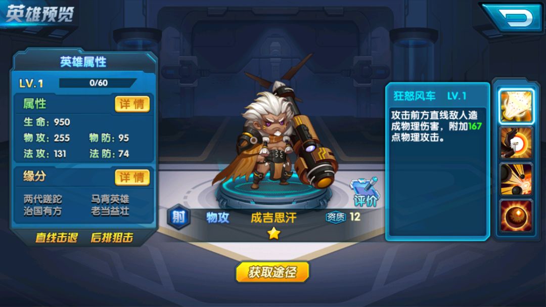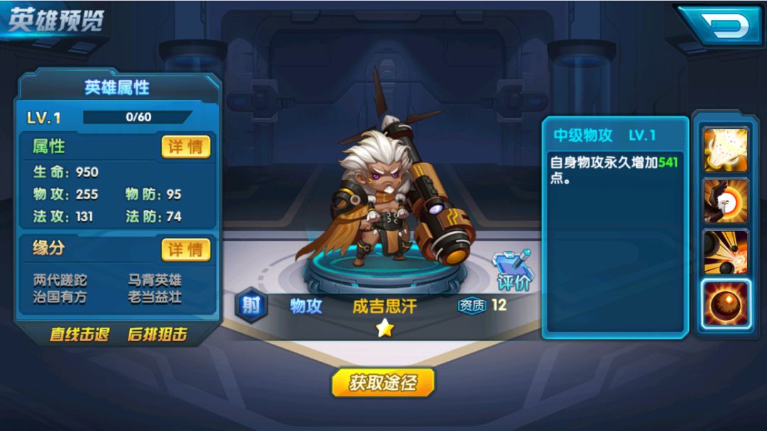 12资质的大可汗,实际能力可达到13甚至14资质。面对法术型敌人可以与之匹敌,属于物理输出型的汉江。前期过度可以用很久。