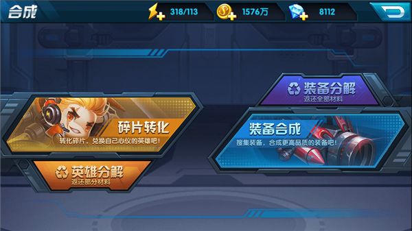 装备分为白、绿、蓝、紫、橙、精良橙装、卓越橙装。可以通过装备合成将低品质的装备合成为高一品质的装备。装备合成有一定概率失败,合成橙装以下时,失败不会扣除装备,合成橙装以上(不包含橙装)时,会随机保留3-5件资质和战斗力最高的装备。成功合成时会消耗掉6件材料装备。装备分解可以将背包中进行过培养的装备进行分解,分解后会获得一个初始状态的该装备,并返还部分培养该装备时消耗的金币、锻造材料、精炼材料。