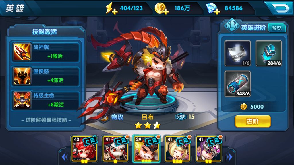 在游戏中英雄不仅可以提升星级,还可以通过特定的道具为英雄进阶,英雄成功进阶后,达到对应的进阶等级,可以开启新的技能