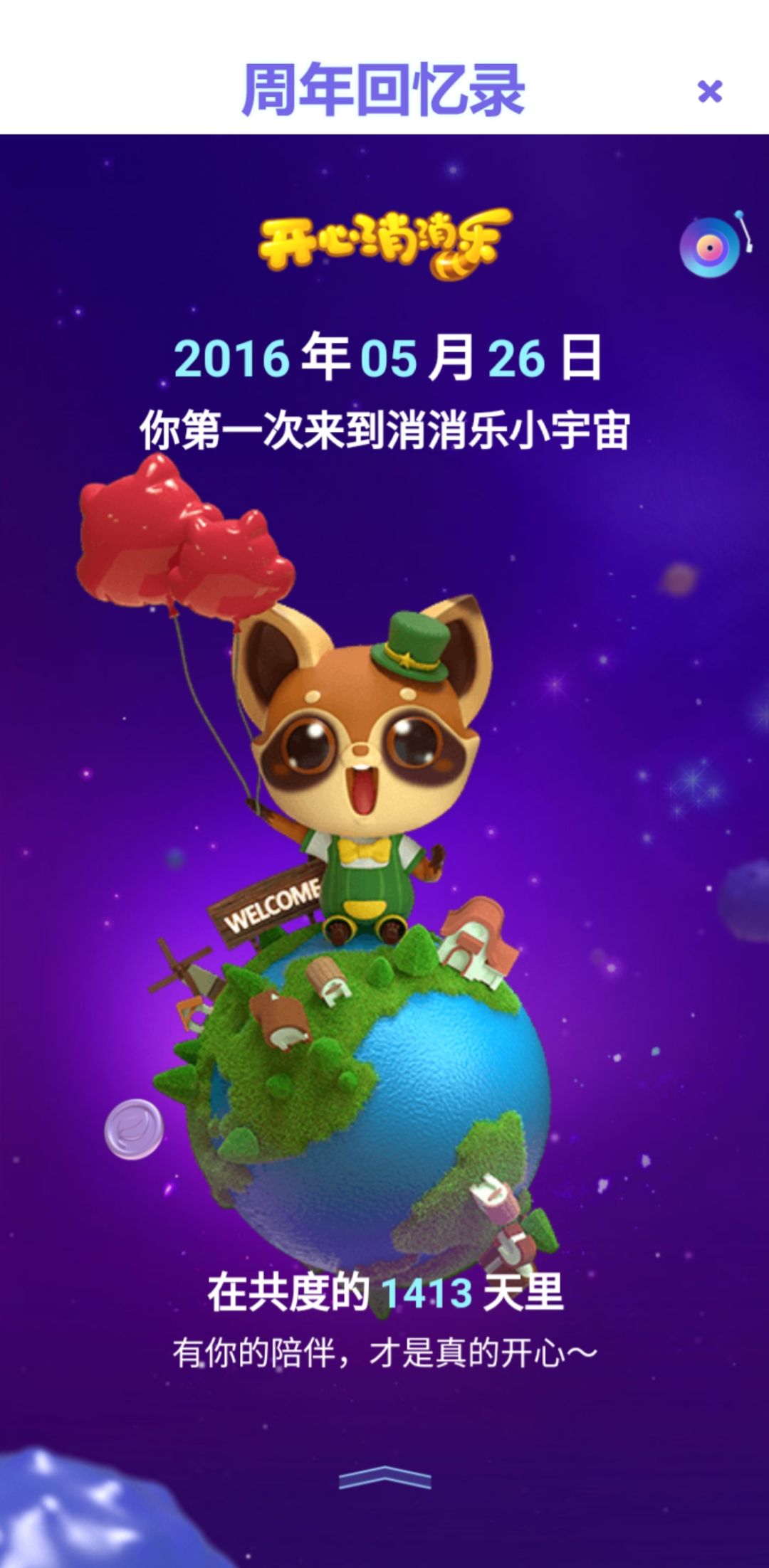 如果没有这份数据报告,我可能都快忘了,原来我是2016年5月26日第一次接触了消消乐。时光如梭,不知不觉间消消乐已经陪伴我1413天了,1413谐音一世一生,多么美好的寓意。