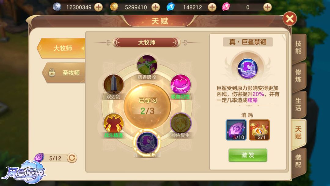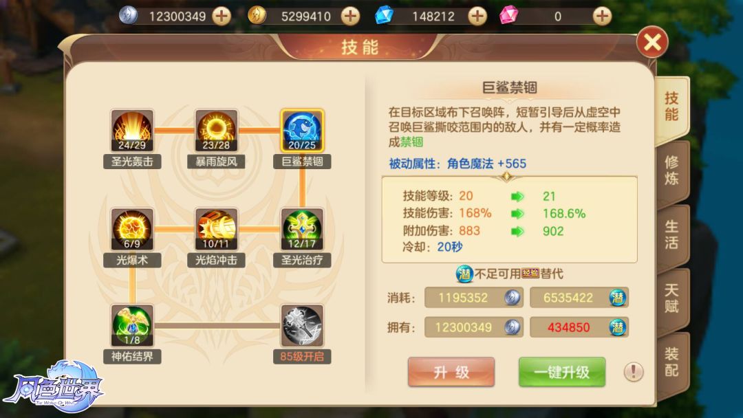 体验新技能往往是很多玩家的乐趣所在,在《风色世界》中学完8个技能便再无主动技能可学,这未免让人沮丧。但不要担心,每个职业都赋予了一个前缀为“真”的“隐藏技能”!以圣言师为例,游戏中圣言师的第三个技能巨鲨禁锢,就拥有对应的“真·巨鲨禁锢”为隐藏技能。升级为“真·巨鲨禁锢”后,技能伤害可提升20%,并使原技能带有眩晕效果。