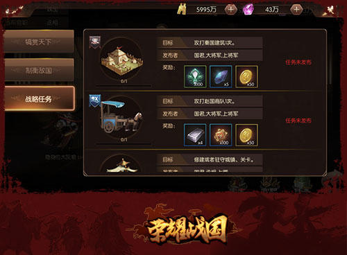 在官职体系中,位于上层阶级的国君、丞相、大将军、上卿、上将军具有特殊的官职权限,可以发布国家战略任务,如犒赏天下、征收税务、攻打别国建筑或商队、修建驻守城镇或关卡等。