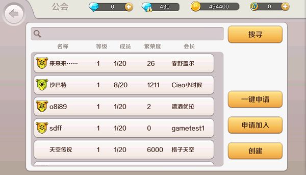 点开后玩家们可以随时选择或者搜索自己心仪的公会并加入。