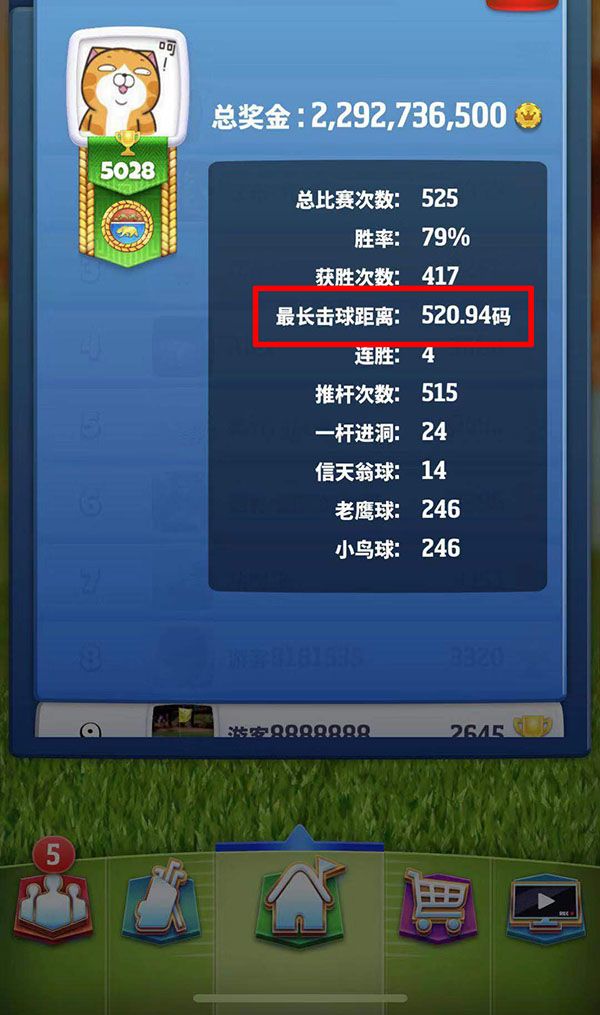 《决战高尔夫》公测至今,玩家对于游戏有了一定的了解与认知,部分用户也开始挑战一些成就,比如本期的活动,最远距离码数,我们先来欣赏一下全服务器第一排名的选手,玩家【ACE】平时是如何成绩。