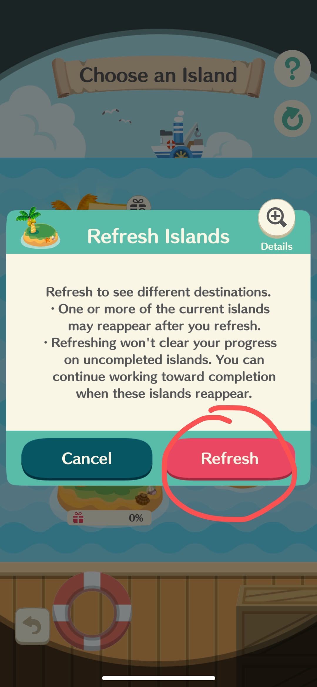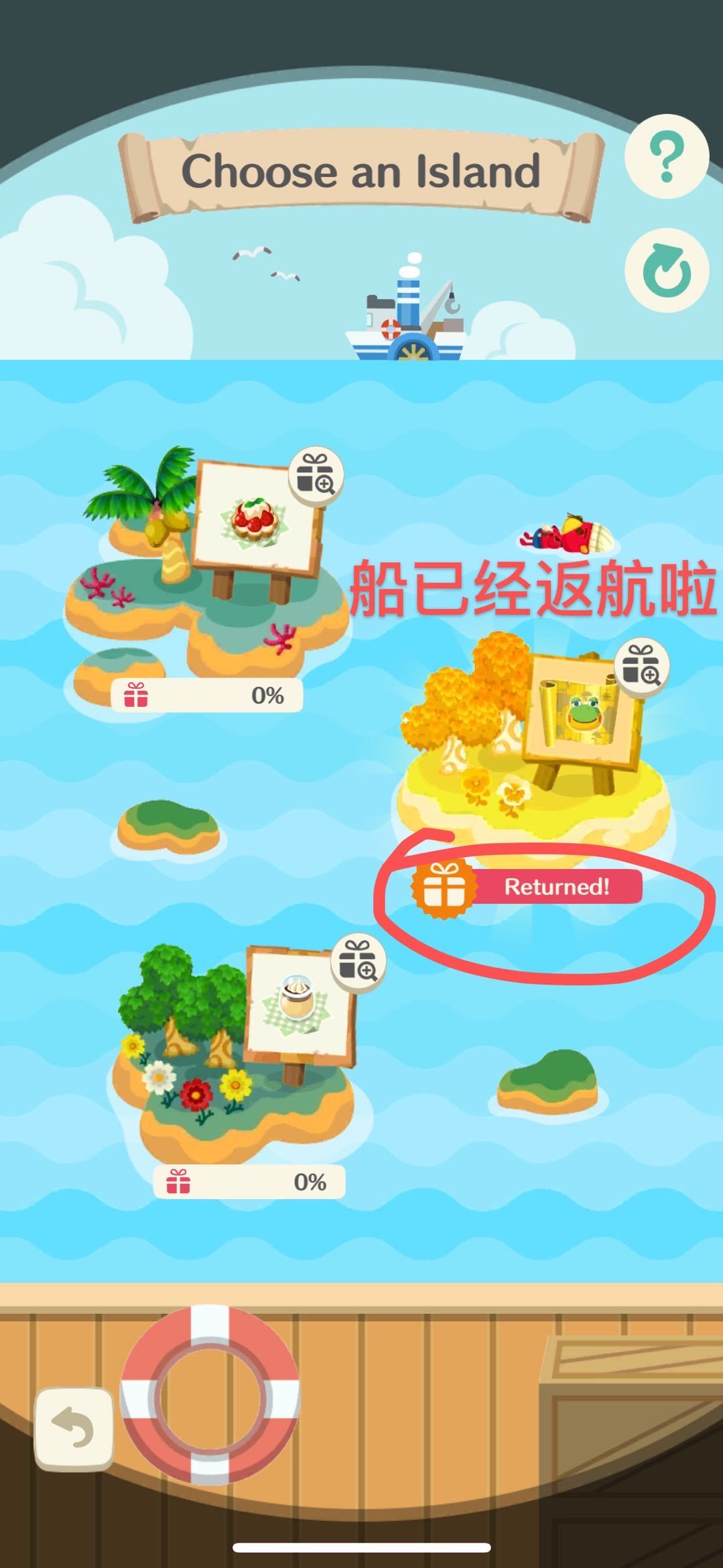 —如果当时有任何的航程在进行或纪念品在等我们领取,我们是无法刷新岛屿的
