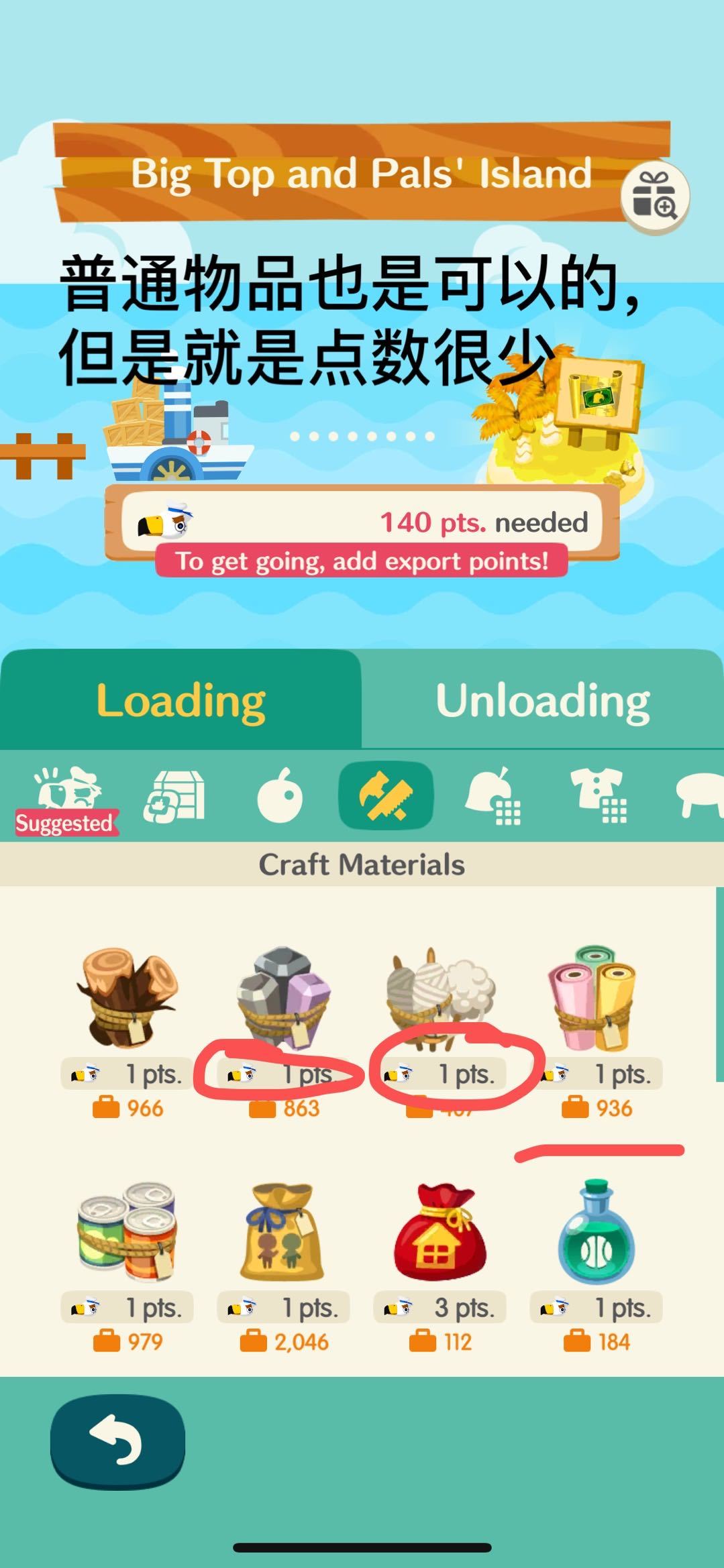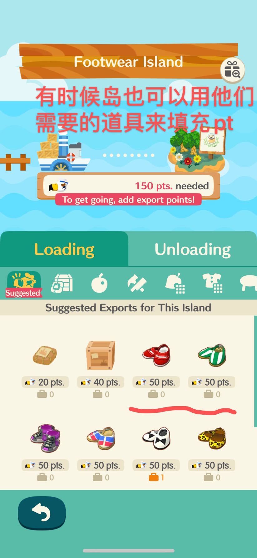 —每个岛屿都有推荐出口的产品,如果想要船离港,那么就必须填充完所有的point,详细见下