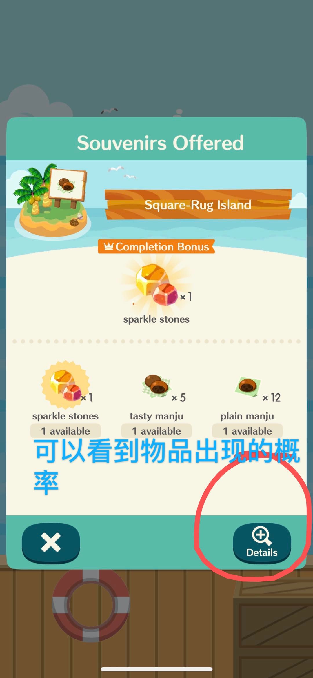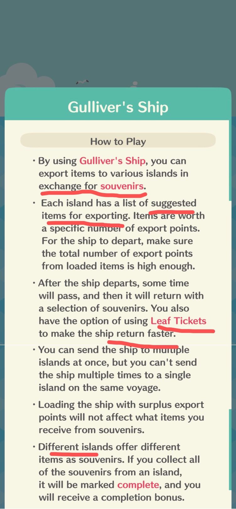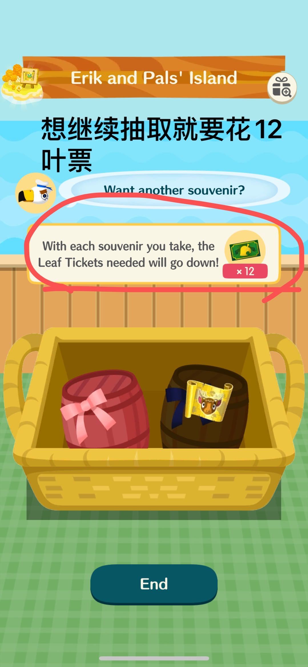 —如果船返回时带来多个纪念品,第一次挑选纪念品是免费的,但是如果像挑选剩下的纪念品就需要支付叶票,(第二次挑选是12叶票,第三次是8叶票,第四次是...别问我是怎么知道的,血泪😭)
