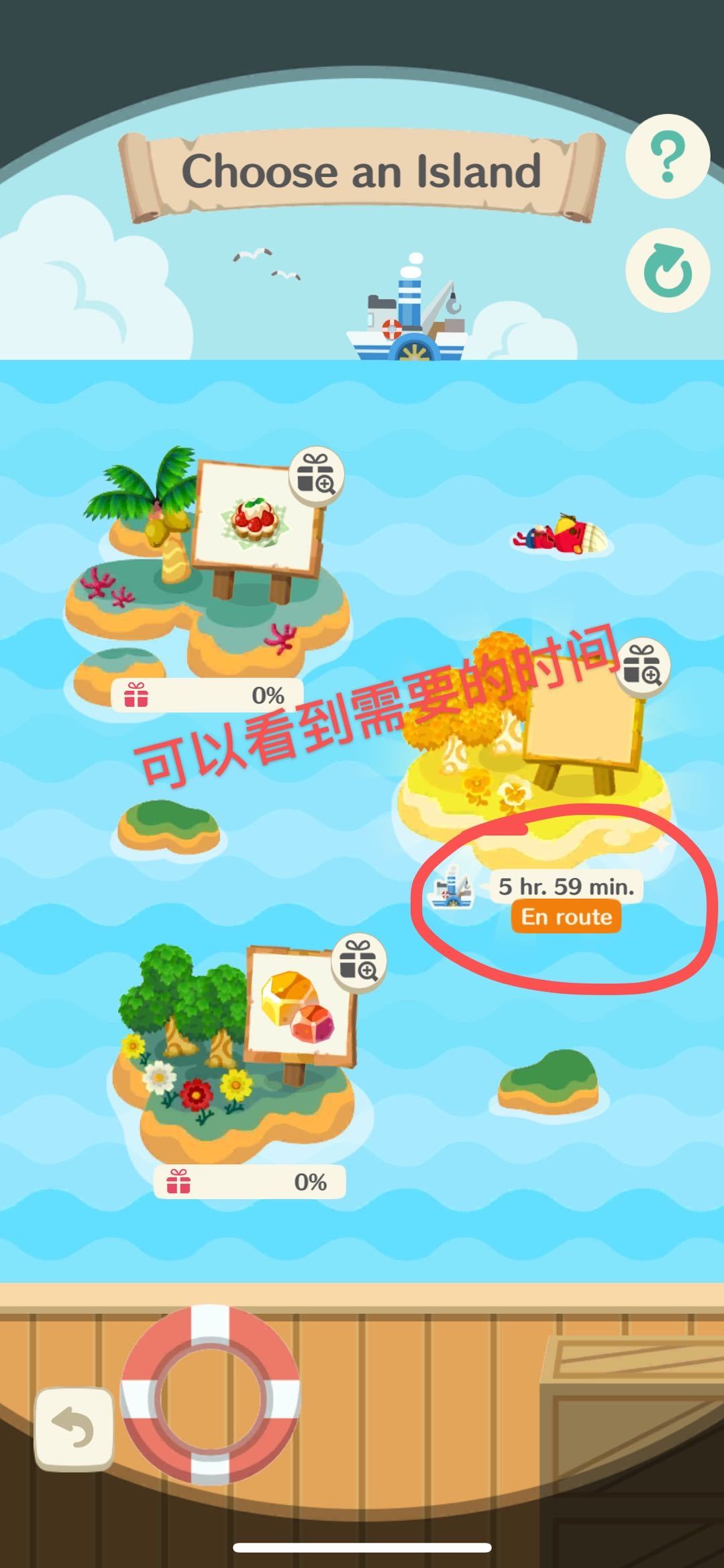 —每个岛屿的航行所需时间不一样, 当船离港后,我们可以用叶票让船马上返回,(不过我是不会干的👋)