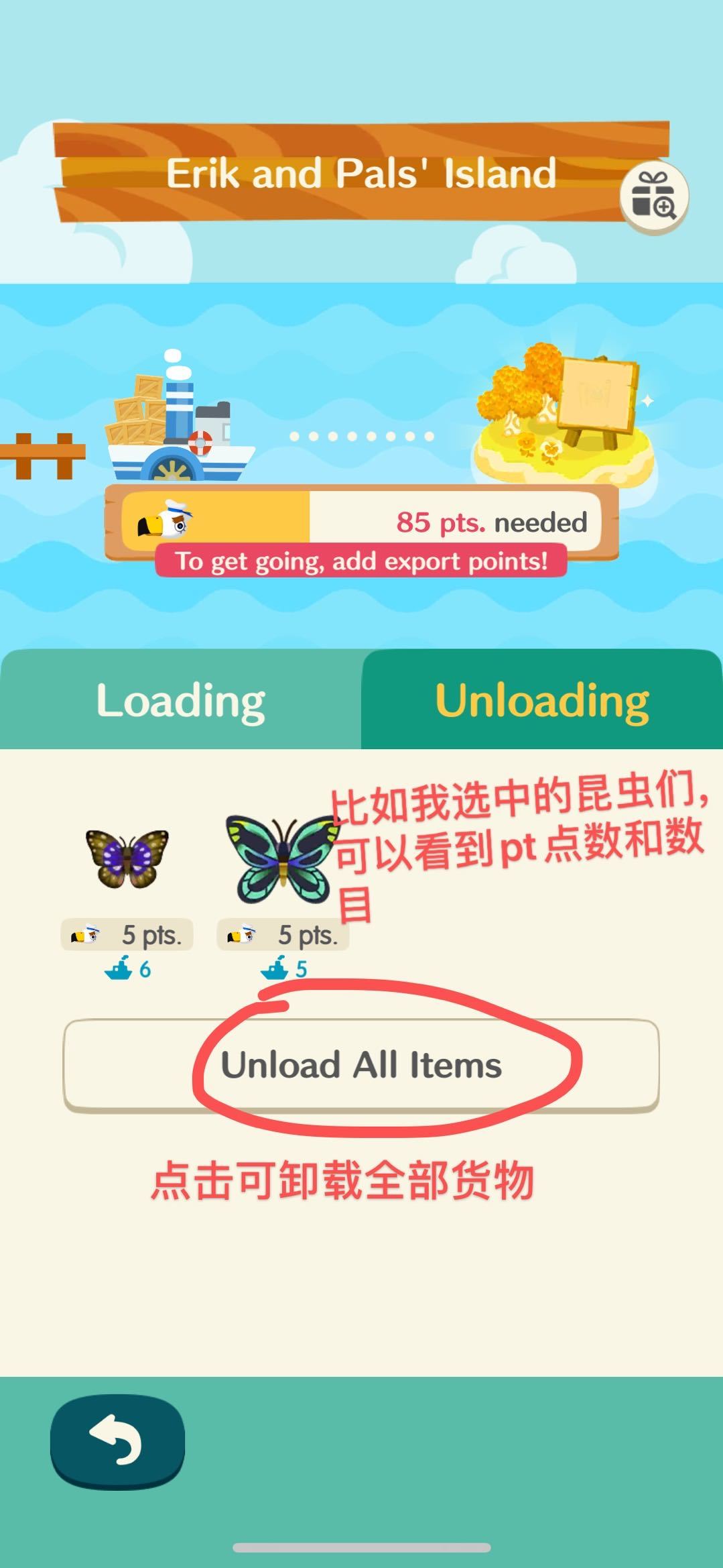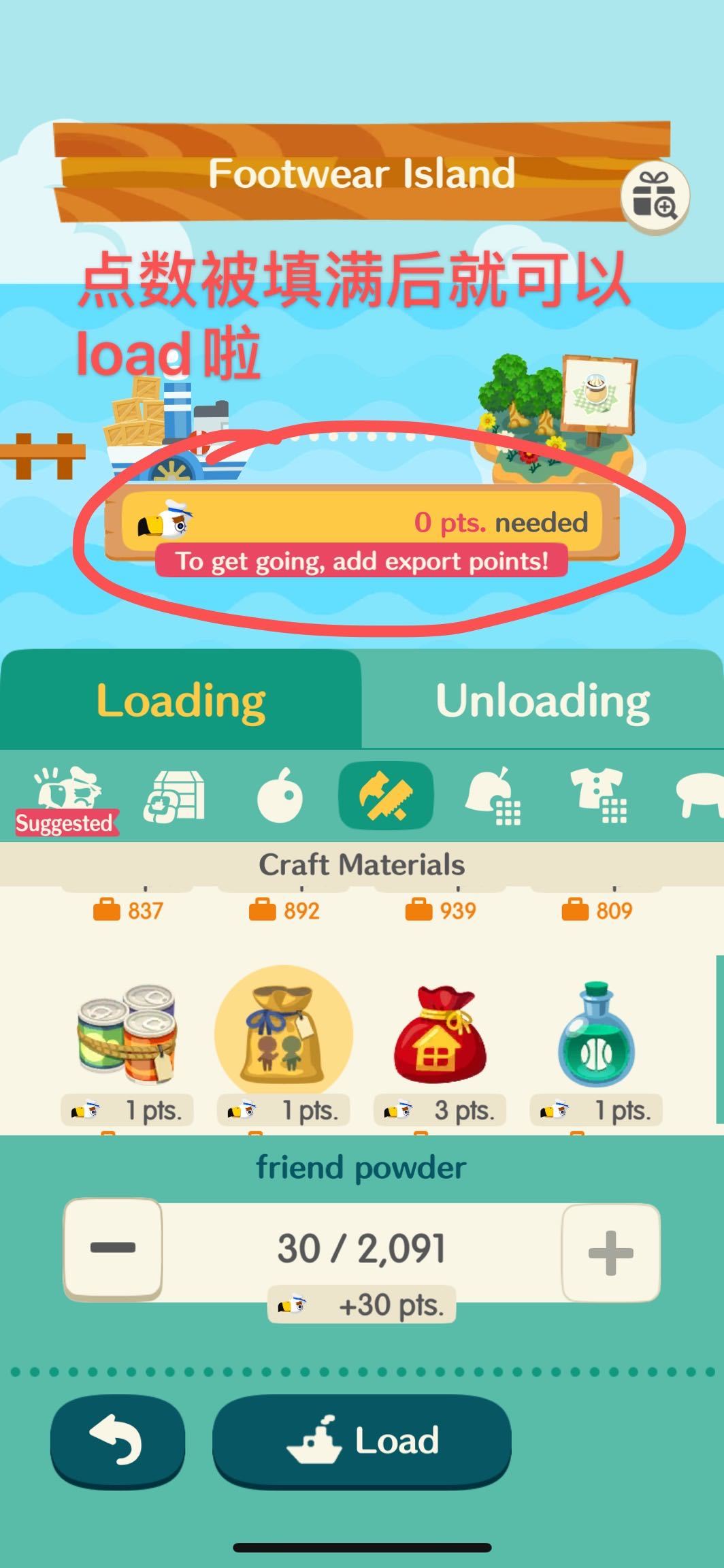 点数必须要填满岛屿需要的数目,船才会离港哦~