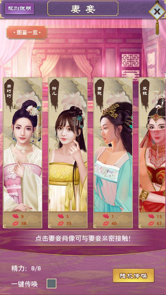 答:不是,妻妾要看情况。选择一个你觉得好的妻妾,主培养亲密度,把礼物全砸她身上,不要分开赠送礼物,不然幕僚属性升不上去,生出来的孩子资质也不好。