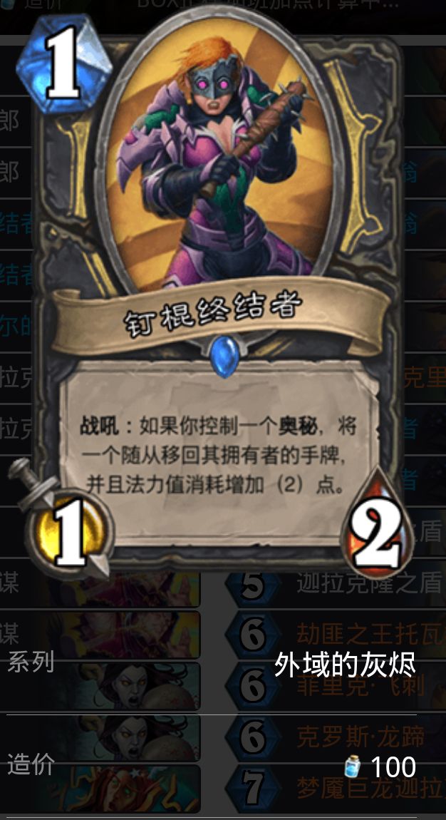非常离谱的一张过牌奥秘,配合新卡伏击,让对方琢磨不透是下随从还是放法术,前期稳定过牌卡也可配合钉棍达成combo