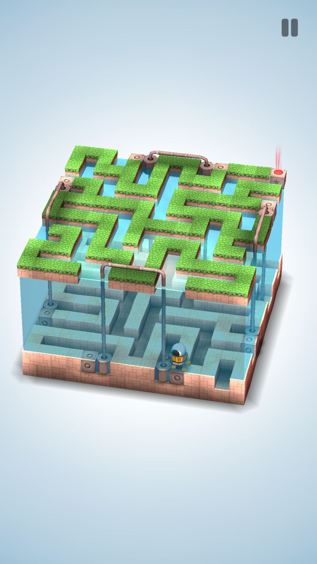 在新作当中主角依旧是由这个萌萌的机器人担当,在游戏中玩家需要控制小机器人利用各种机关通过关卡,游戏中的画面设计还是十分精美的,看起来非常清新。