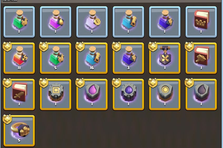 黄金令牌独有奖励:英雄药水*11、训练药水*5、建筑工人药水*16、力量药水*3、移位任意铲*1、建筑之书*1、战斗之书*1、建筑大师金币符石*1、圣水符石*1、金币符石*1、暗黑重油符石*1、壁垒之戒*5