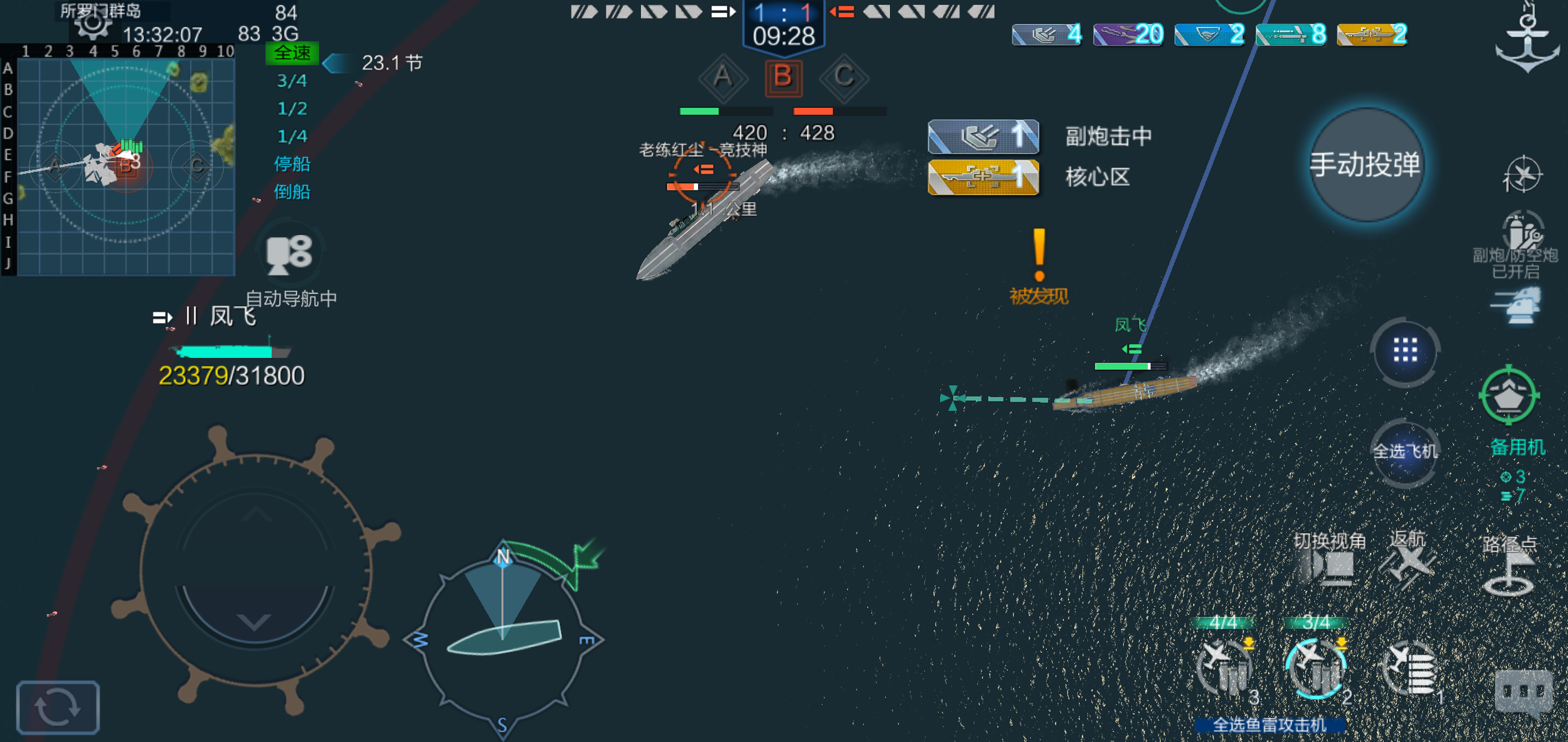 两方队友全死,航母用副炮打