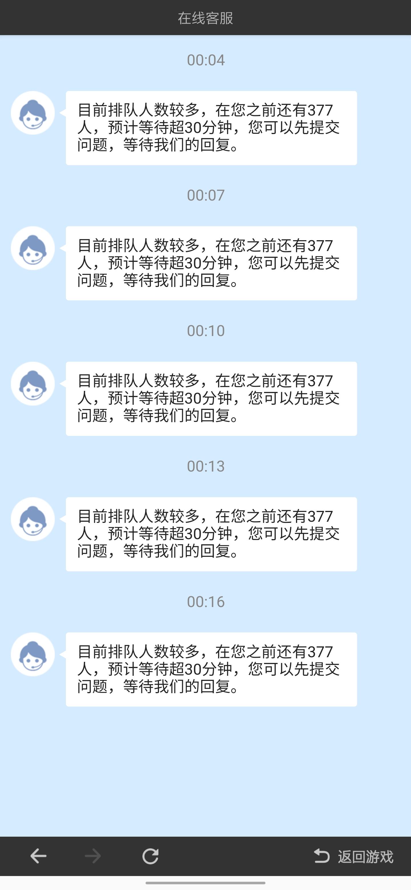 今天幸运星活动出问题之后我就想去找人工客服,然而从排队400多名到现在过了快10个小时377名,这是啥人工服务效率啊亲?排一个星期到我吗?然后我就提交问题等回复,回我的却是这幸运星活动出问题了,修复好才会上线。?????拜托,我关心的不是你活动啥时候上线,我关心的是我被扣的钻石啥时候能还回来好吗,没钻石什么都干不了,俱乐部捐献捐不了,神秘商店抽卡啥的不够钱买,我这一天憋得慌哇?能不能早点处理好?官方连公开的公告都不发,taptap也没个解释的帖子,吃玩家钻石这是小问题得不到你们重视??