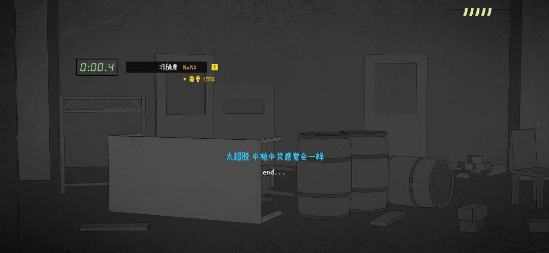 图二是在进入关卡后用主武器随便开两枪止住,走到区域后系统自动切换成副武器,然后正常通关准确度就超过100%了