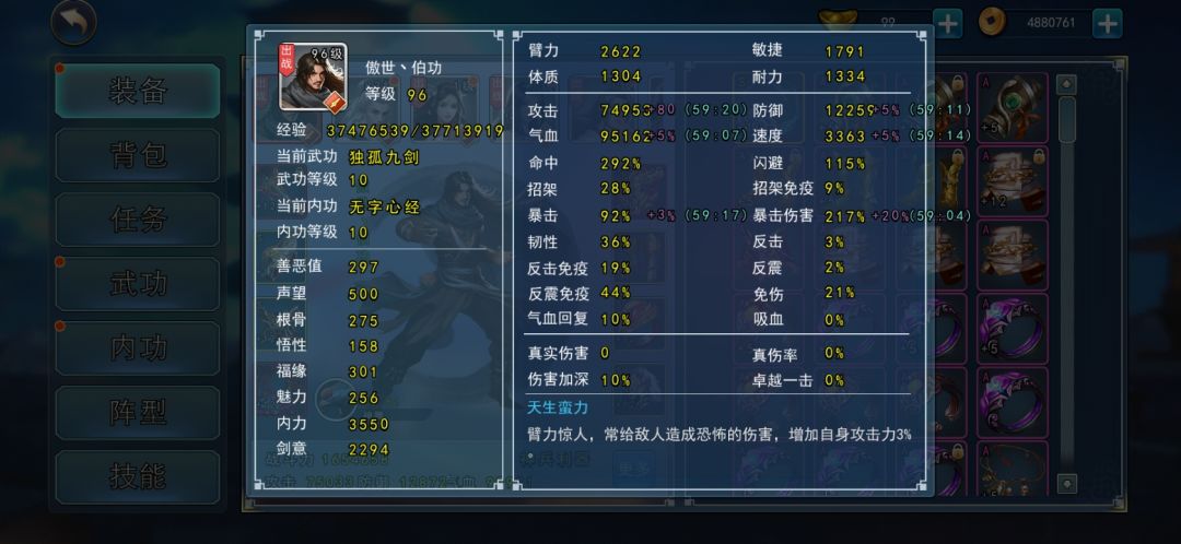 准备好足够的阅历和真气丹,千年灵芝人参。存档。找张三丰通体重修随从,把随从身上的所有丹药、功法扒下来给主角。
