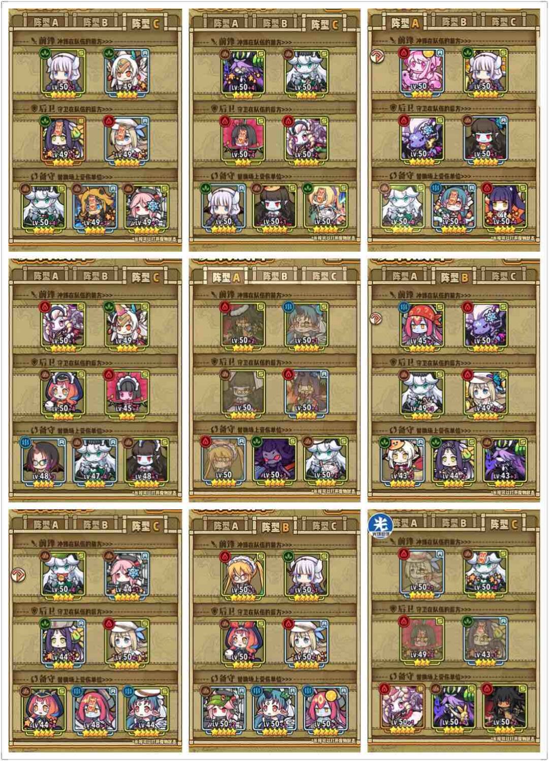 大家可以从里面选适合自己的阵容。后面讲解如何选择魔物。