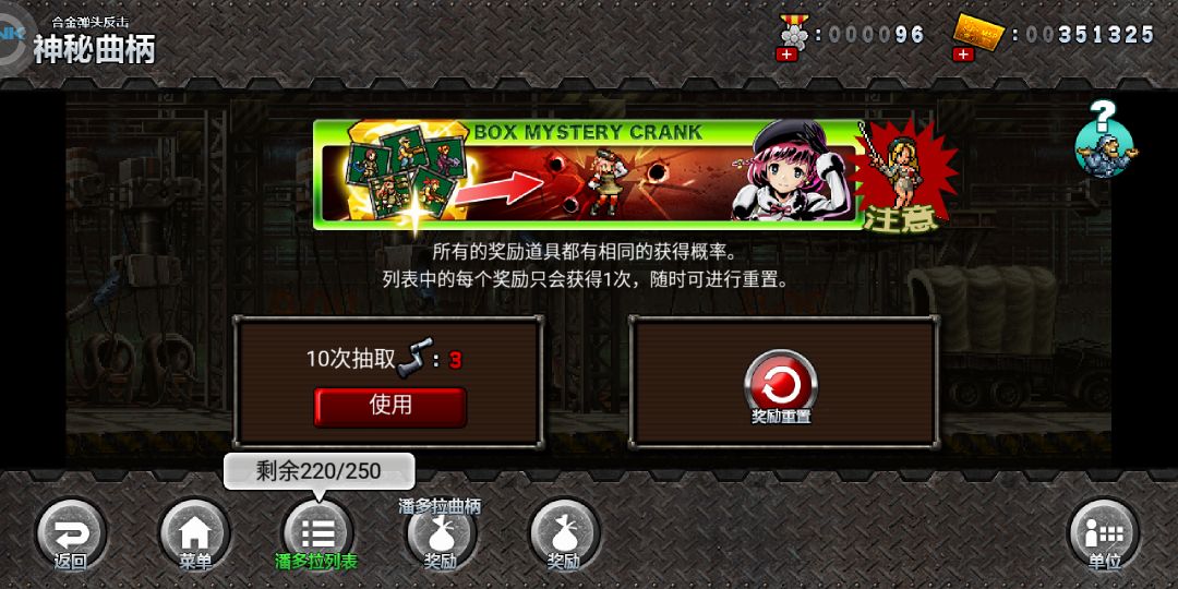 你可以通过「神秘曲柄」获取各种单位及道具。有些人会称为「抽卡」。