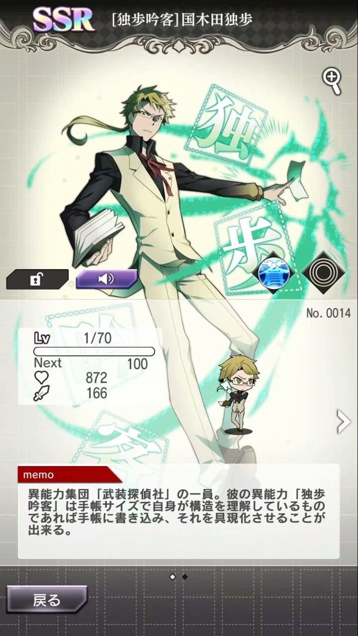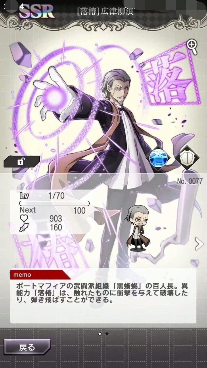 两年前,一名少年带着自己偷买的手机和一本《人间失格》来到了学校。嗯,他刚刚周末在家看完了文豪第一季,迷上了太宰治,买了他的作品,然后。。。书被偷了。少年垂头丧气的躺在宿舍的床上刷着手机,然后发现了这款游戏,他,入坑了,少年深更半夜连出三张ssr,当晚空间发布:明天再肝出太宰治,紧接着,他忘记了母亲会登录他的QQ,然后。。。然后第二天他被叫到了老师的办公室,手机下场很惨。