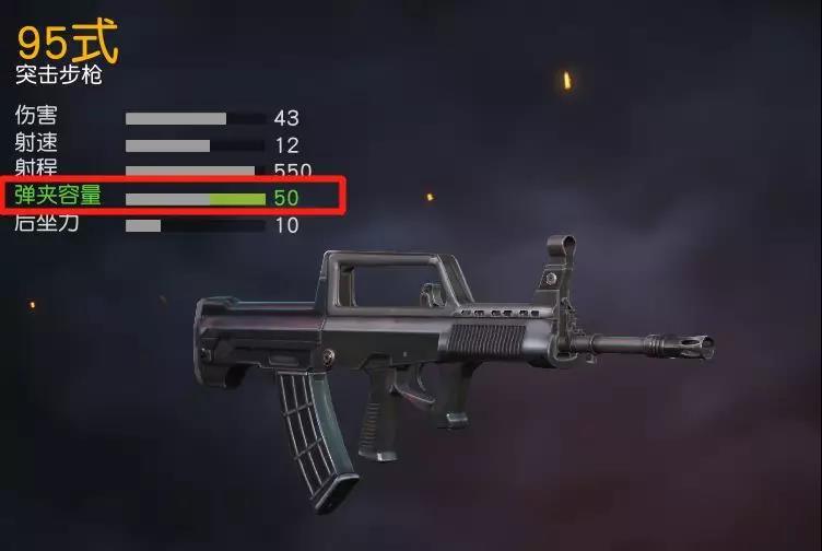 弹夹容量的大小,决定着枪械是否能够。进行持续的火力输出,安装了扩容弹鼓的95式步枪,弹夹容量一跃成为。所有枪械中的第三名,仅次于MK60和AUG。
