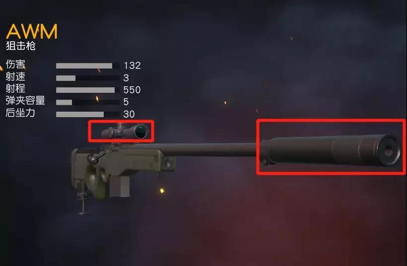 AWM身为伤害最高的狙击枪,它拥有两个专属黄金搭档,消声器和高倍镜。