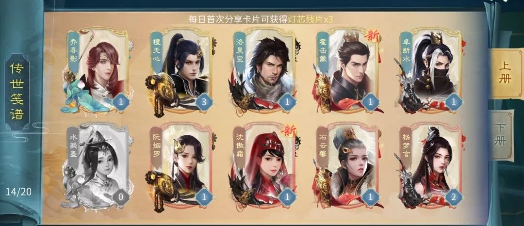 另外,每日首次在传世笺谱页面,分享角色也能获得三个灯芯残片哦!