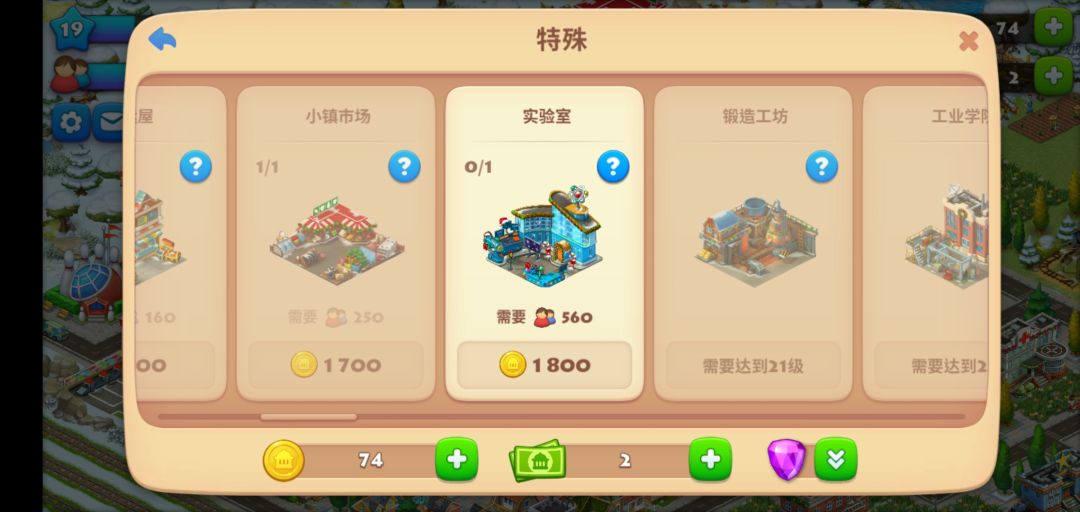 记得玩到18级左右好像卡金币了,然后一直建东西建不起来,卖东西卖不出去的尴尬境地。放空自己做了好多直升机,但其实并不是正确做法(直升机钱少经验多,马上你就升级发现要买的东西更多了!!天啊(இдஇ; )