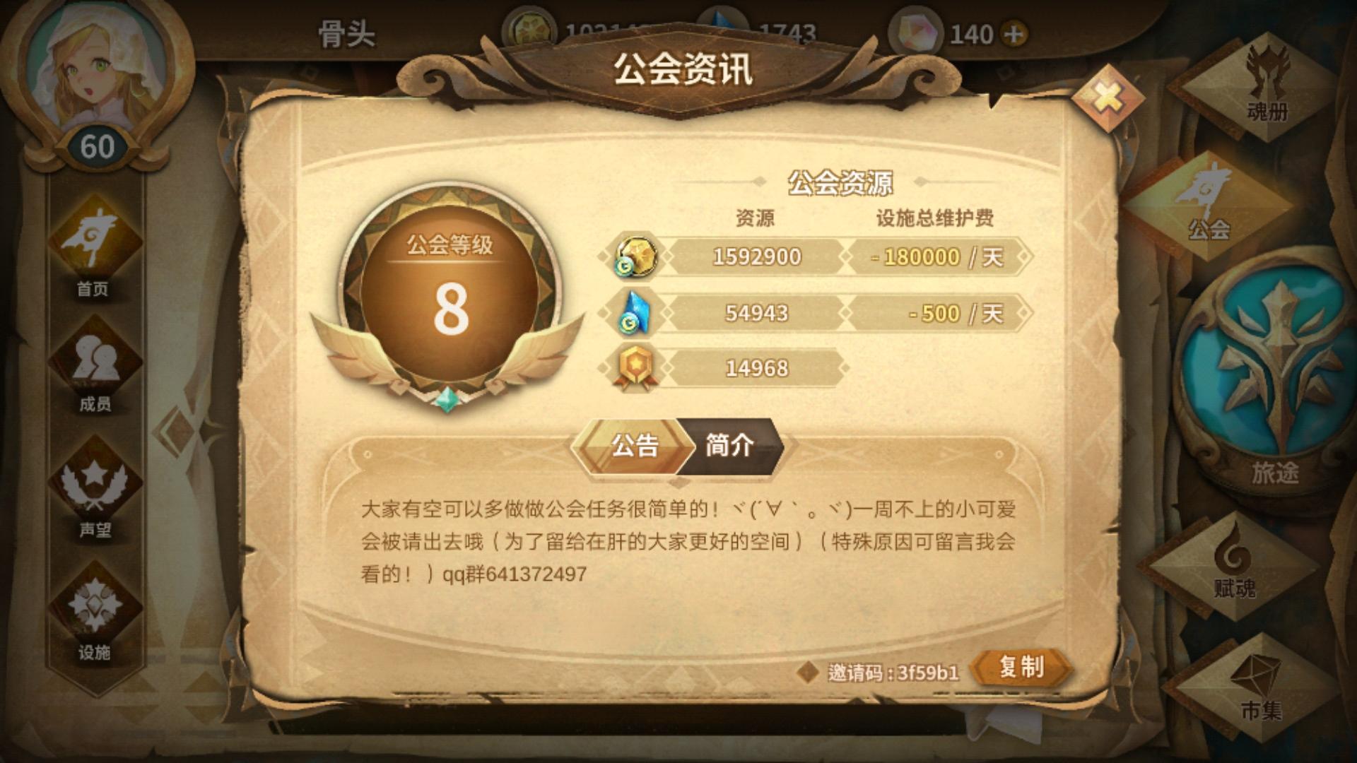 我们公会由于没有萌新报道,所以群里只剩下一堆老咸鱼和我们这堆萌新,我们公会要求就只有每日完成公会任务(讲道理这个很基础了),公会的福利也很多,目前公会有三个机器日常运转(石头,素材还有兑换)我们机器肯定还会再开的,招萌新也是想多开机器,改善公会的环境,群里氛围绝对很好,大家平时也都是什么游戏都聊(一堆宅男什么都玩过。。。),我们群里现在没有什么新人也一直很苦恼,在此召集萌新,公会肯定是能升到9级,也只是时间问题,当然我也是个老萌新(对,没错,我就是介于萌新和大佬之间的存在),现在群里的老咸鱼当甩手掌柜,我就负责来招人了,所以萌新们来报道吧!!!