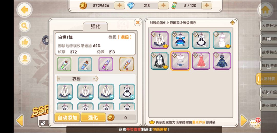 然而衣服最高才50级