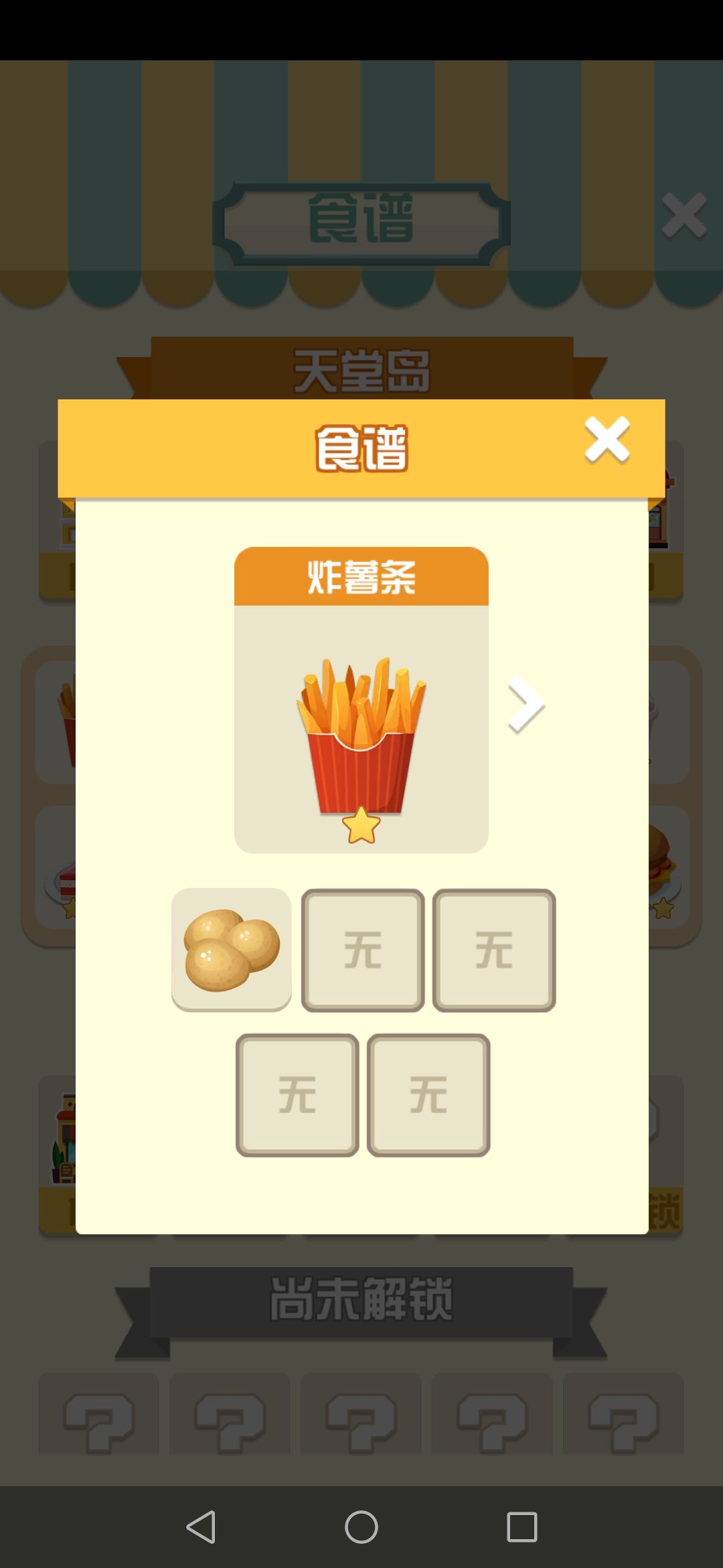 天堂岛 美式快餐:1.炸薯条,2.煎蛋,3.炸鸡块,4.番茄沙拉,5.草莓奶昔,6.草莓蛋糕,7.鸡肉汉堡,8.火腿三明治,9.火腿披萨,10.芝士牛肉汉堡。