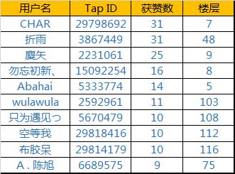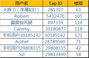 (中奖名单根据Tap ID进行排序方便查询,QQ号已进行局部马赛克处理,请对照Tap ID进行辨认,灭哈哈哈)