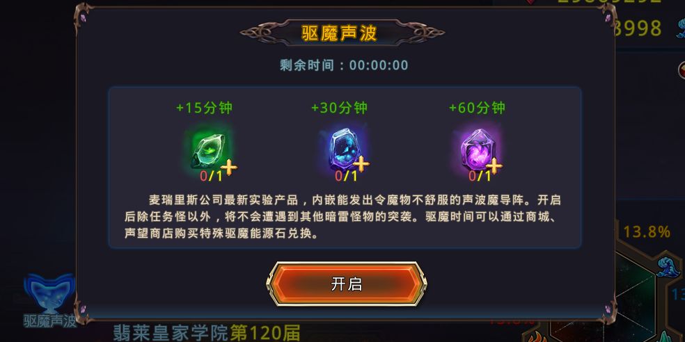 还记得很多玩家反馈野外频繁遇敌十分不爽,是的,这次我们增加了新式秘密武器,只要在【人物角色】面板里使用麦瑞里斯最新研发的这个产品,除了身上任务相关,其他魔物将会绕道而行,远离你的冒险。