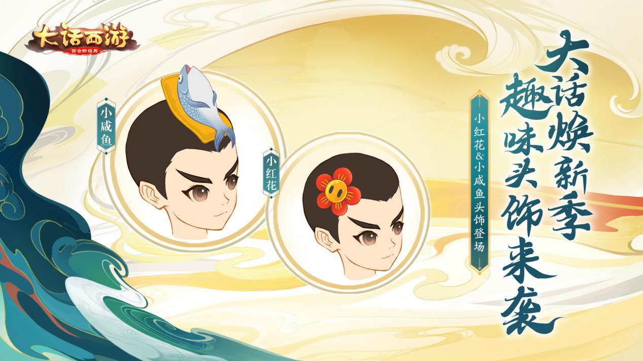 百变头饰,小五叶驾到!《大话西游》手游时装系统再添新内容,全新国风头饰即将登场!萌趣小五叶、小咸鱼、小红花……老铁熟悉的它们将纷纷化身特色头饰,为侠士们的颜值再添亮眼一笔!