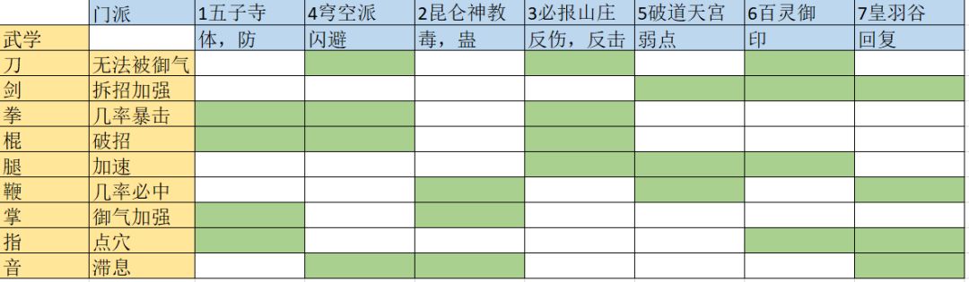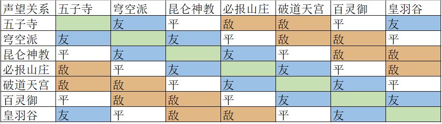,除了声望以外没有任何限制,以下是各个武学和门派的特性,还有门派间声望关系的表格,给大家在游玩的时候有一个参考。