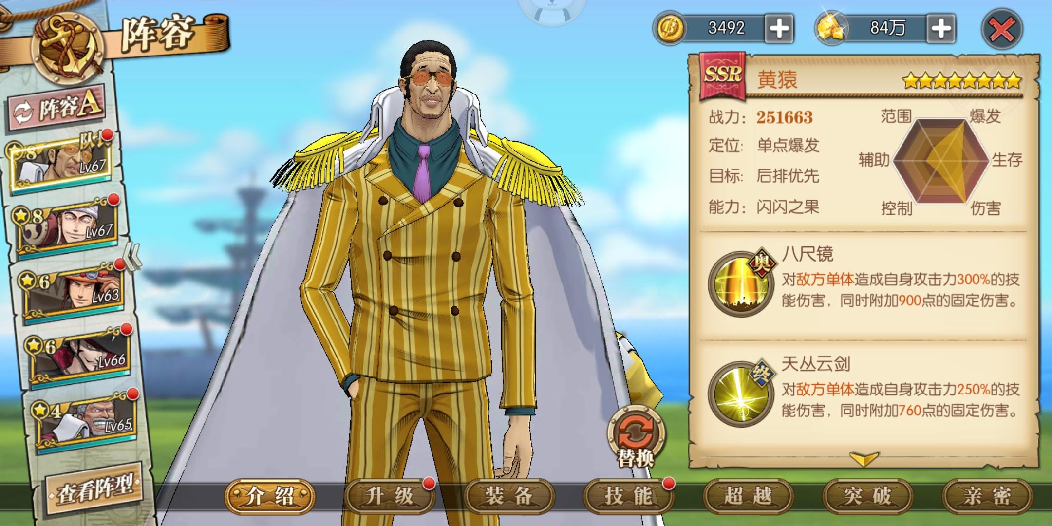 我现在就是很想吐槽一下,我从内测开始玩这个游戏,玩了一段时间了,也不算久吧。内测时间短没有那么有感触,现在从公测玩到现在,就发现很多主线任务就是(基本上)指明要你养哪个任务。比如:66,67主线豹子,那个时候我在网上看了好多攻略,很多就是用罗宾,因为豹子吃混乱。那就养一个吧,一个控也挺好用的。然后又到后面,70卡普,再次上网找攻略,前排放赤犬,佳妮法,再带个乔巴。emmm,佳妮法养了,驱除debuff,乔巴也有,然而,赤犬。。。,玩了这么久就抽到一只,换个其他的肉还不行,输出的话也勉强不算差吧。