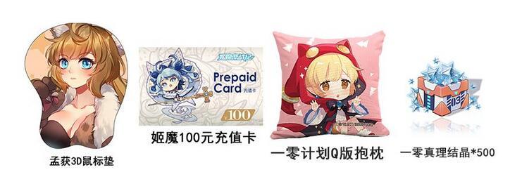 2、 姬魔恋战纪孟获3D鼠标*1及游戏内100元充值卡*1