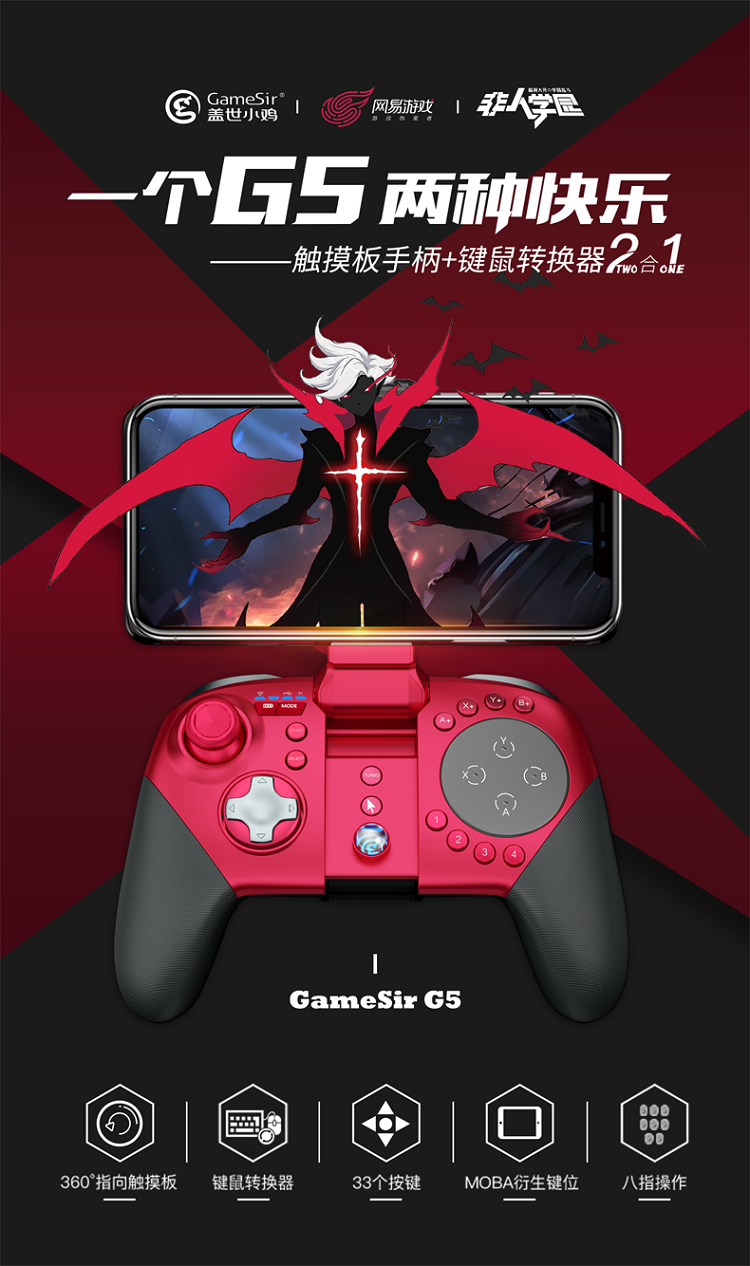 吃货德古拉帅气上线,还将和盖世小鸡手柄开启特别联动,为同学们带来一大波福利!通过本次合作,小鸡手柄将直连非人学园,不需要调整键位,蓝牙连接就可以畅玩。小鸡G5手柄更将推出为新英雄德古拉量身打造的定制手柄,黑红底层配色加上银色按钮的点缀,尽显吸血鬼种族雍容而神秘的风范。此外,即日起在gamesri旗舰店购买普通版小鸡G5,还能享受50元联动折扣,前100名更可以领取德古拉英雄、时装、硬币、金砖、拍手器等价值100元的豪华大礼包。同学们不要错过这一波丰厚奖励喔!