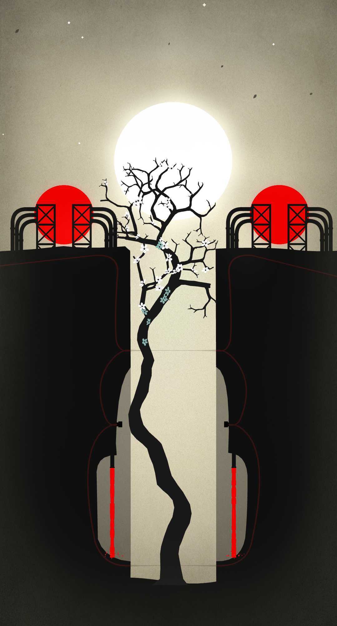 这关我们开始种树的时候就会触发第一个机关,上方的门就会关闭,我们这时候要快速修剪,碰到青色发光体触发第二个机关就能阻止大门关闭。本关需要手速快一点。