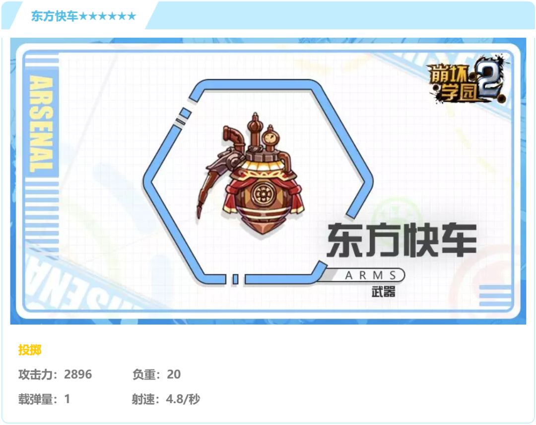 崩坏娘:用它击中敌人后,可以获得提升移速和东方快车的攻速。