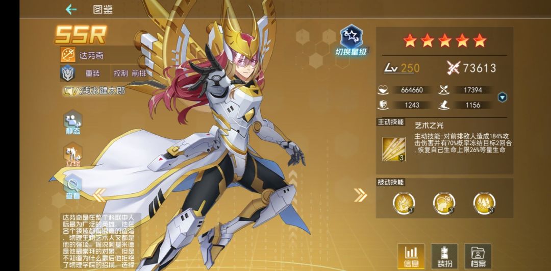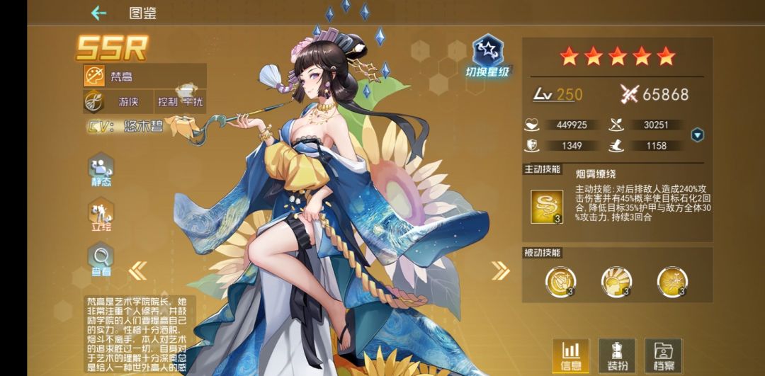 艺术学院院长,控制系女二当家,卓越的控制,优秀的输出伤害,免疫石化控制,被动触发还加超高的免伤,搭配强奶,前排推荐。