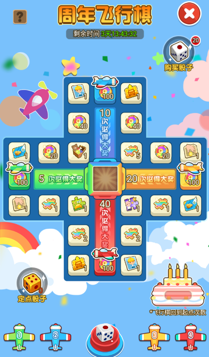 首先就是这个【周年飞行棋】啦!看到这个熟悉的棋盘有没有想起以前和朋友一玩飞行棋就不知不觉度过了几个小时的欢乐时光呢?