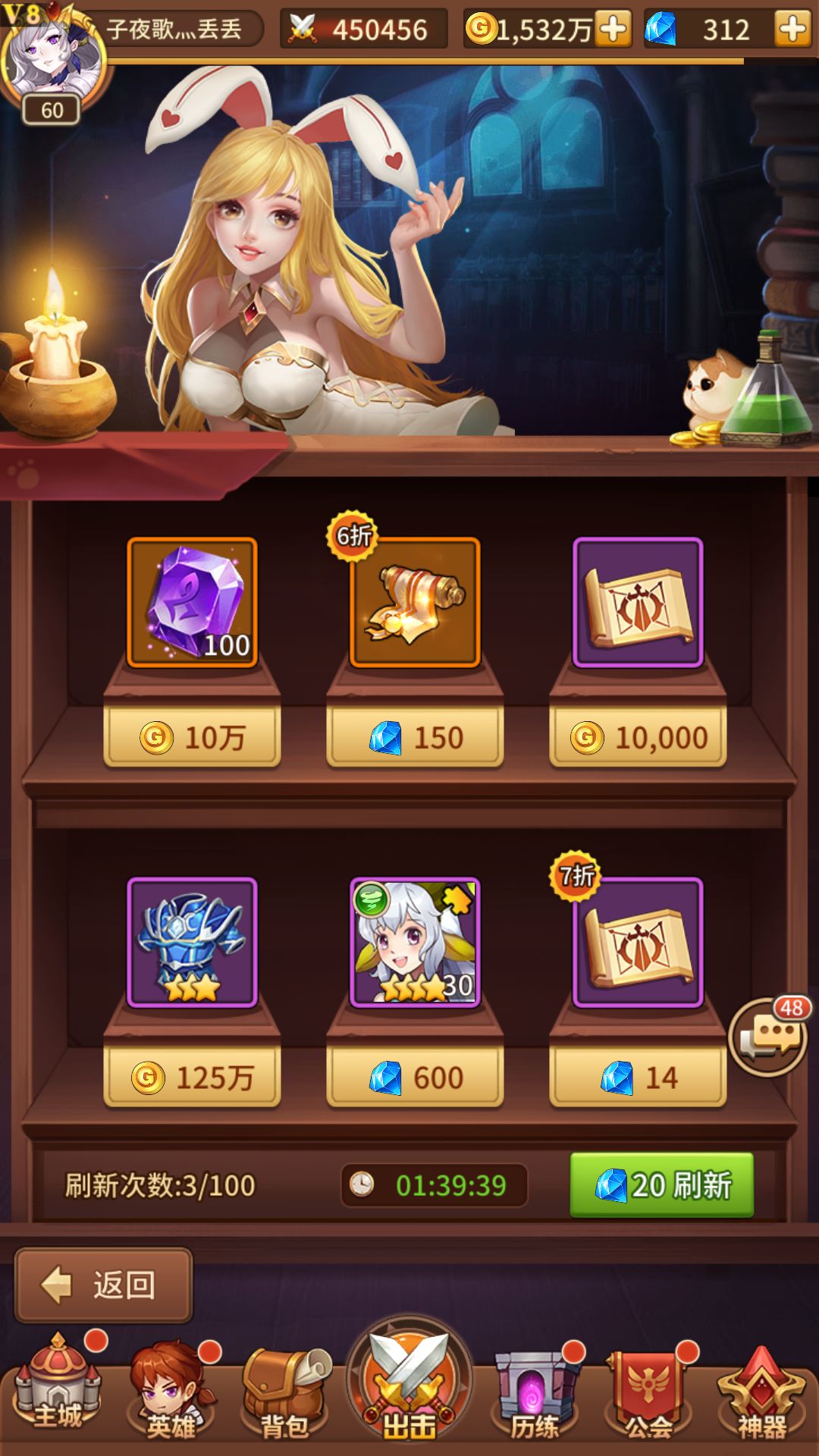 第二件事,新手第一周的点石成金任务一定要点!然后去商店购买180w金币的四星英雄!!这里尤其是中v高v,基本上可以达到1.4钻换1w金币的程度(楼主这里按照v4 5左右计算的),高v可达1:1w(v7 8应该就能做到),萌新们请尽量自己计算自己的钻金比,看看是否满意。接下来楼主将教大家根据自己的钻金比去计算商店买180w金币的四星英雄到底是亏还是赚。看完我的结论,我可以说甚至你用钻石刷新商店买都行 绝对不亏。很多朋友第一反应都觉得自己金币都不够用为啥还去买这个,感觉特别的亏。事实上在有点石成金的情况下就应该疯狂的买,没有点石成金的情况下不用特意去刷新商店,但是看见了还是买一下比较好。当然对于老区高战的朋友来说,每天的日常副本也是必清的,钻石次数一定要清光,效果和之前点石成金类似。我们结合之前算的比例可以很容易算出来当你的钻石和金币转换比能达到1.3:1w的时候,购买180w的四星英雄相当于花费230 240钻左右,如果能有1:1w 则是一个四星英雄180钻。这意味着相当于你十连抽出了十个四星!我们计算七个四星可以合成一个五星,然后假设好几个三星价值等于一个四星,那么意味着你从商店买180w的四星英雄相当于十连抽稳定出货一个五星两个四星好几个三星,反正我是没见过哪家欧皇能做到稳定十连能有这么高的出货率的。这时候有的朋友就有点慌了,如果我vip等级和战力都不高怎么办呢?那这个就得根据你自身的情况来计算了,我在攻略里面不能一一解答,计算的方法就在上面,请根据自己的钻金比计算等同十连抽的钻石数量去换成金币可以购买几个四星,再和你平时的十连抽卡的出货率比较,选取高者即可。而如下图中600钻的四星买了则是血亏。(额外提醒一句,各位朋友前期可以用金币买进阶石,但是别买太多,因为大多数人进阶石将会出现溢出的情况)